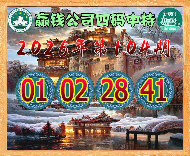 104期:【赢钱公司】 🍃四码中特🍃【01.02.28.41】开:01