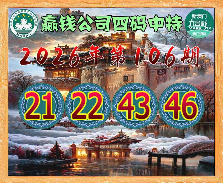 106期:【赢钱公司】 🍃四码中特🍃【21.22.43.46】开:22